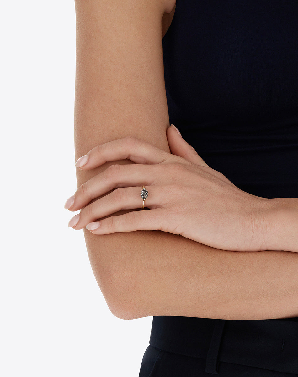 Reverse fonde sapientemente savoir-faire italiano e innovazione. Al cuore della collezione, un meccanismo brevettato che permette di ruotare l'elemento centrale del gioiello, rivelando con un semplice gesto una duplice essenza. Capolavoro di artigianalità e passione, l’anello "Reverse Baby" reinterpreta il celebre design della collezione in una versione dalle dimensioni delicate, ma dal carattere intatto. Eleganza e versatilità si fondono in un gioiello che alterna uno splendido rubino ad un pavé di diamanti ice, neri e grigi. Un’espressione di stile intenso e sofisticato, in un formato sorprendente.