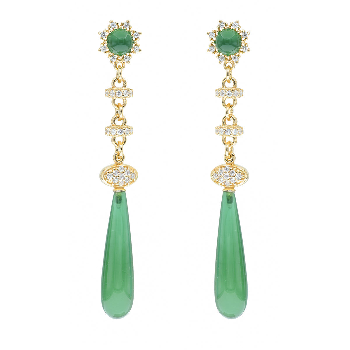 Orecchini in argento con zirconi e agata verde. Collezione Adalia capsule di Koliè 925.