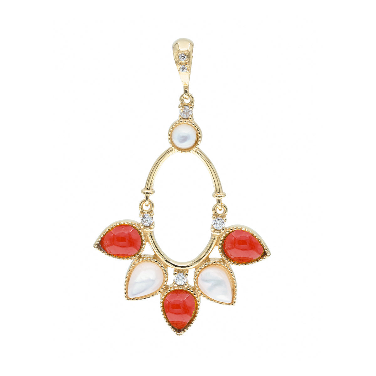 Ciondolo in argento con corallo e madreperla. Collezione Adalia capsule di Koliè 925.