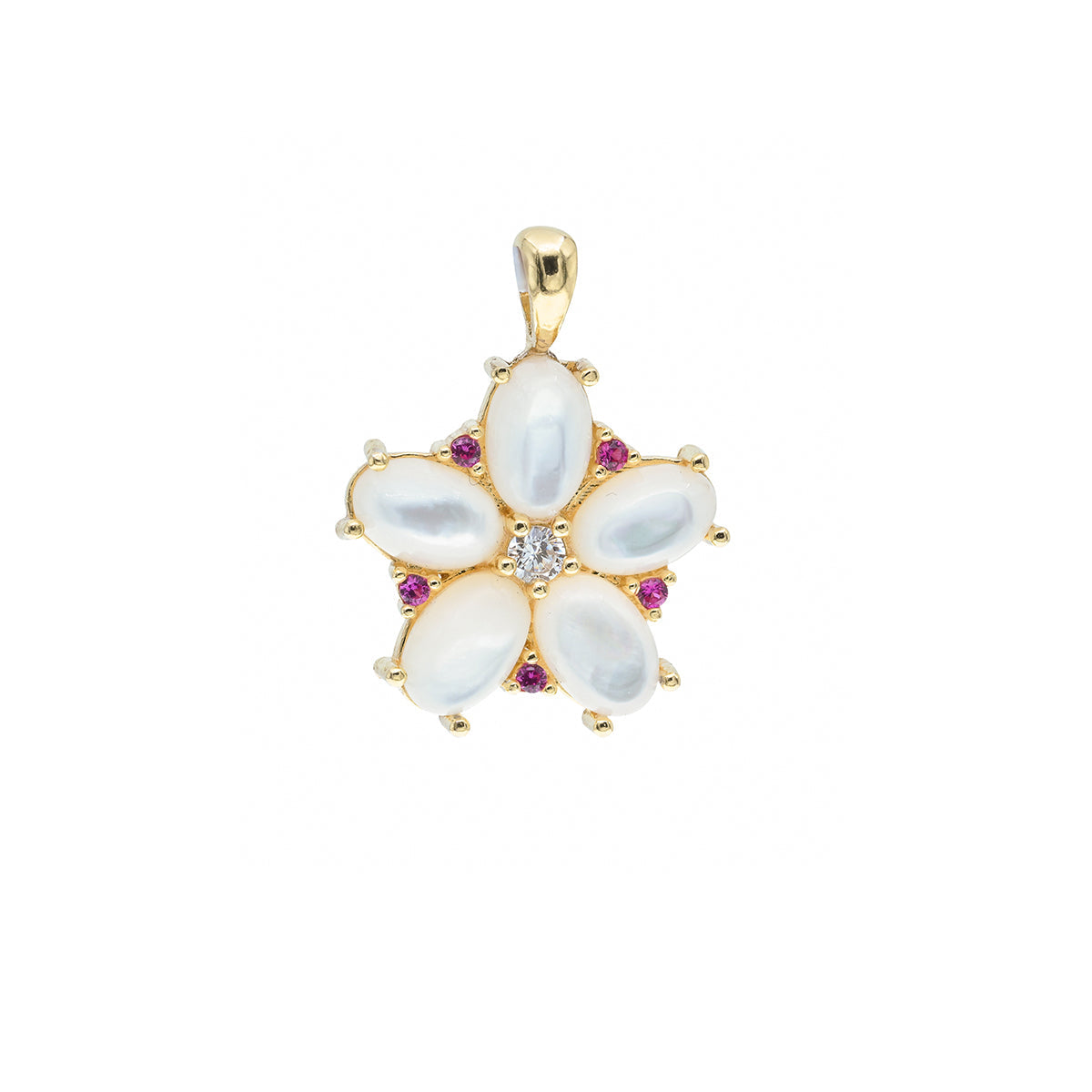 Ciondolo in argento con madreperla e zirconi rosa. Collezione Adalia capsule di Koliè 925.