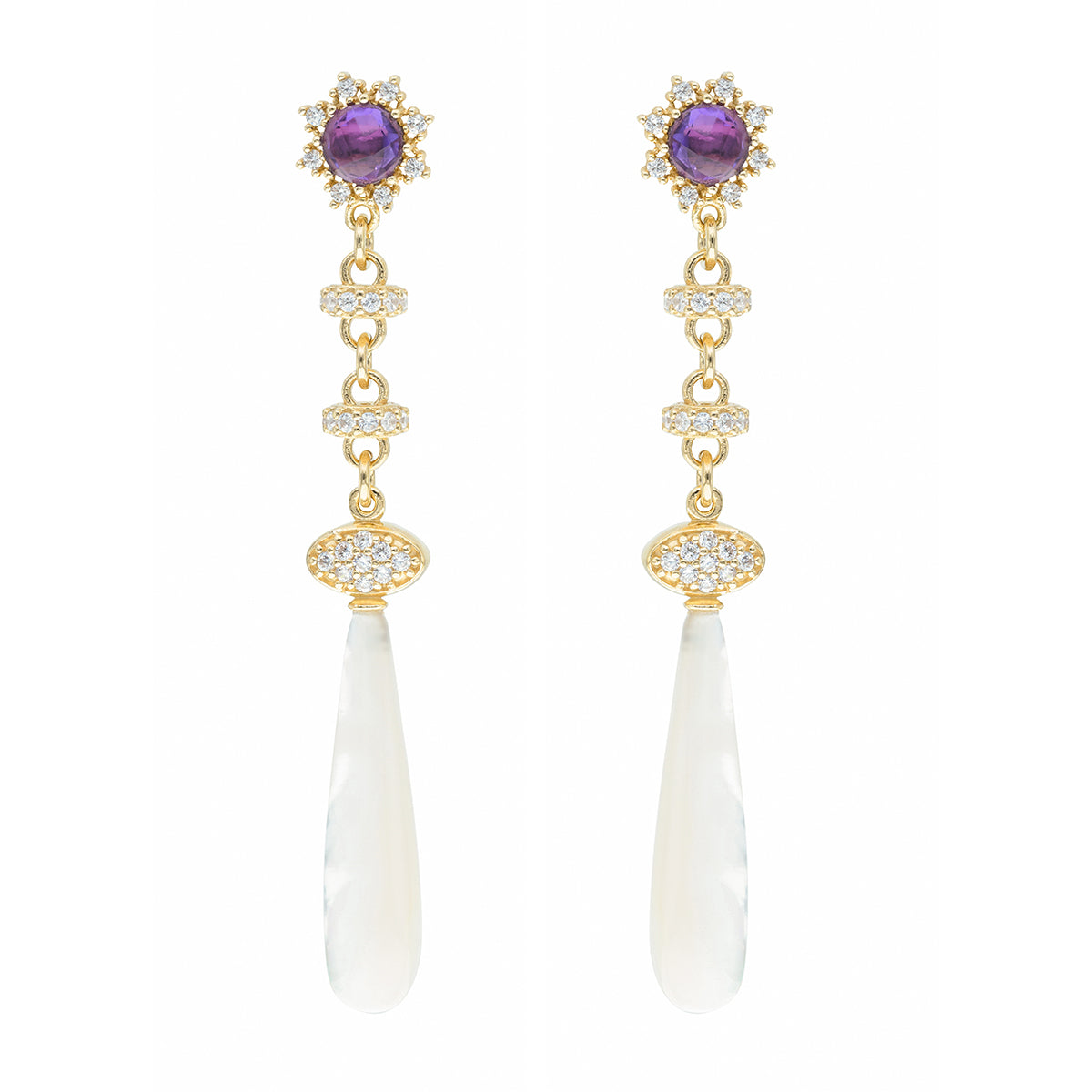 Orecchini in argento con zirconi, madreperla e ametista. Collezione Adalia capsule di Koliè 925.