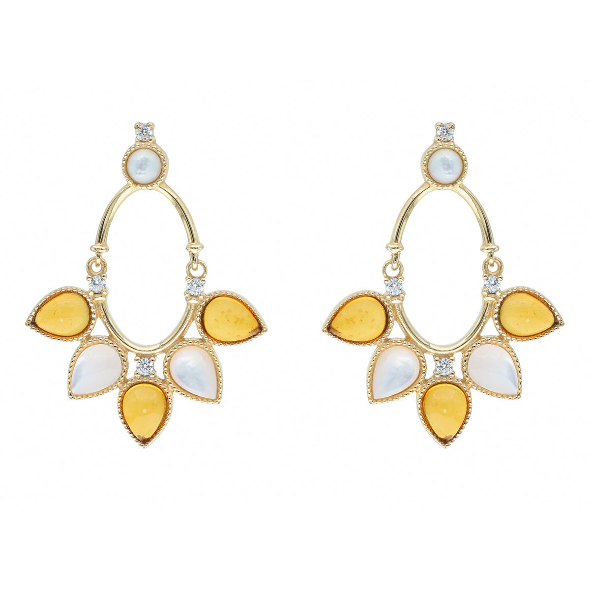 Orecchini in argento con ambra e madreperla. Collezione Adalia capsule di Koliè 925.