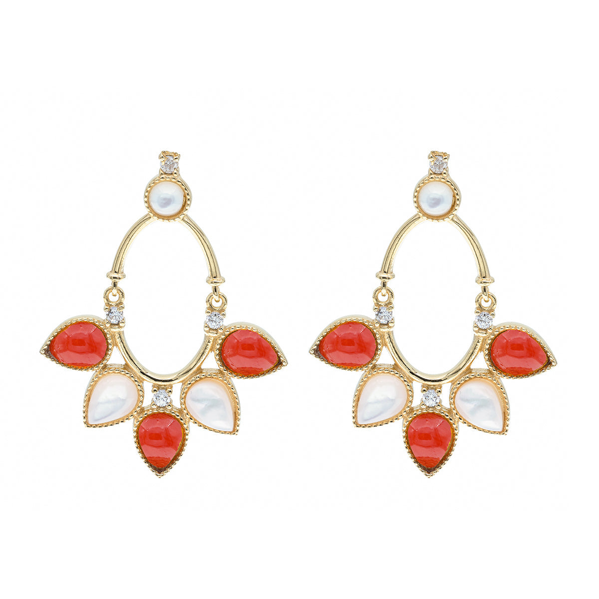 Orecchini in argento con corallo e madreperla. Collezione Adalia capsule di Koliè 925.